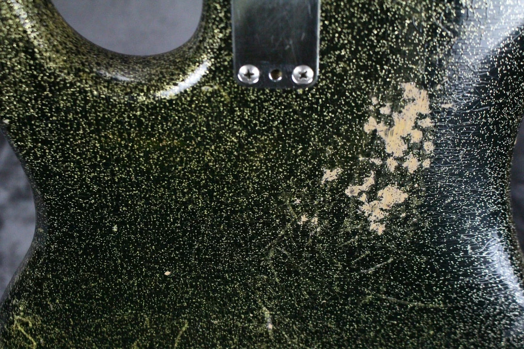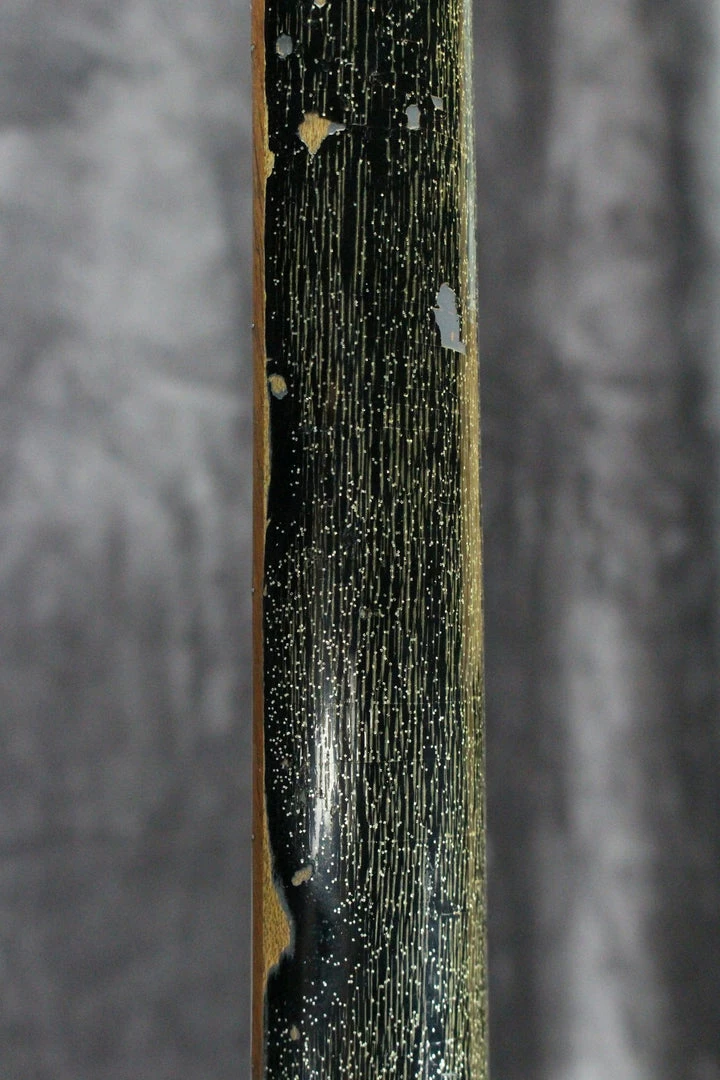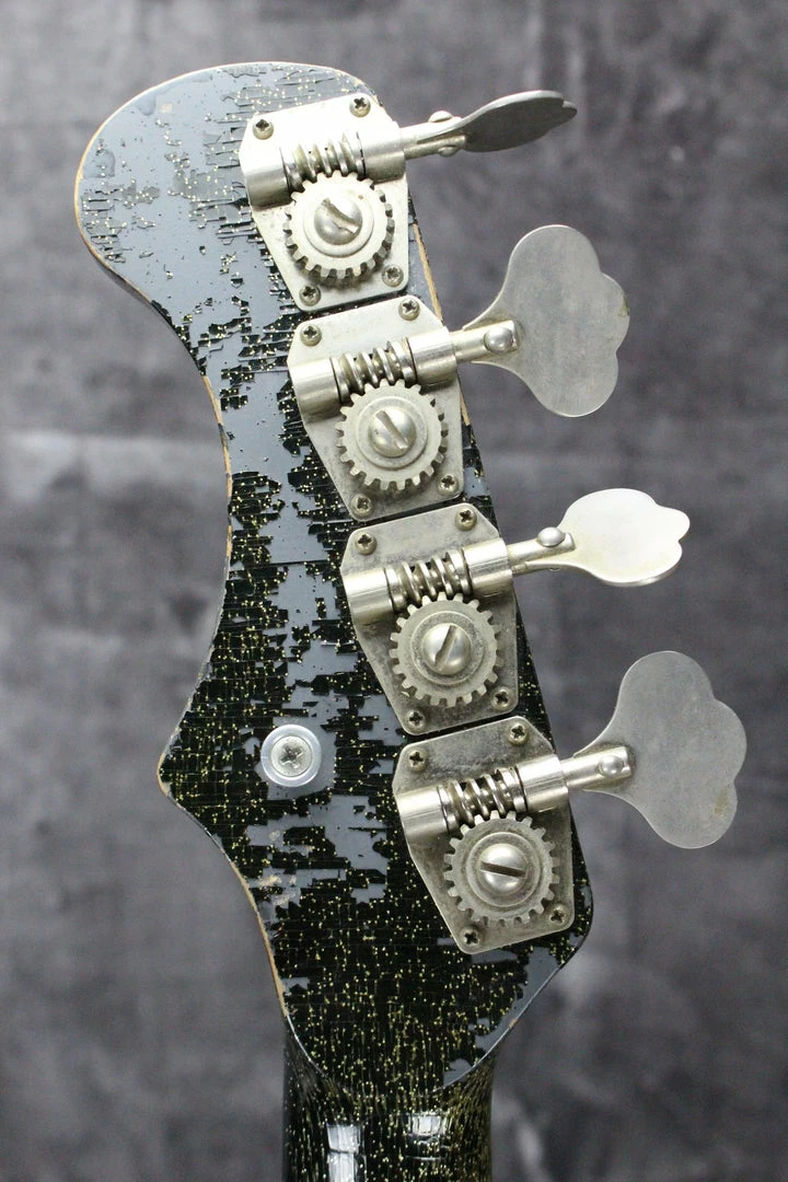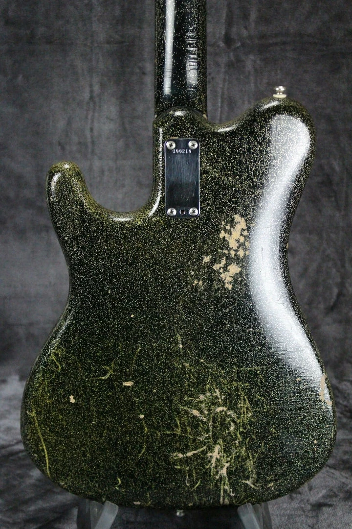 Body: Solid single-cutaway body in a black & gold sparkle finish. Chrome tailpiece with four saddles, a thumbwheel for the string mute system (non-functioning) and a chrome tailpiece cover. 3-ply white pickguard with Magnatone logo, dual plastic control knobs, a thumb rest and pickup cover.