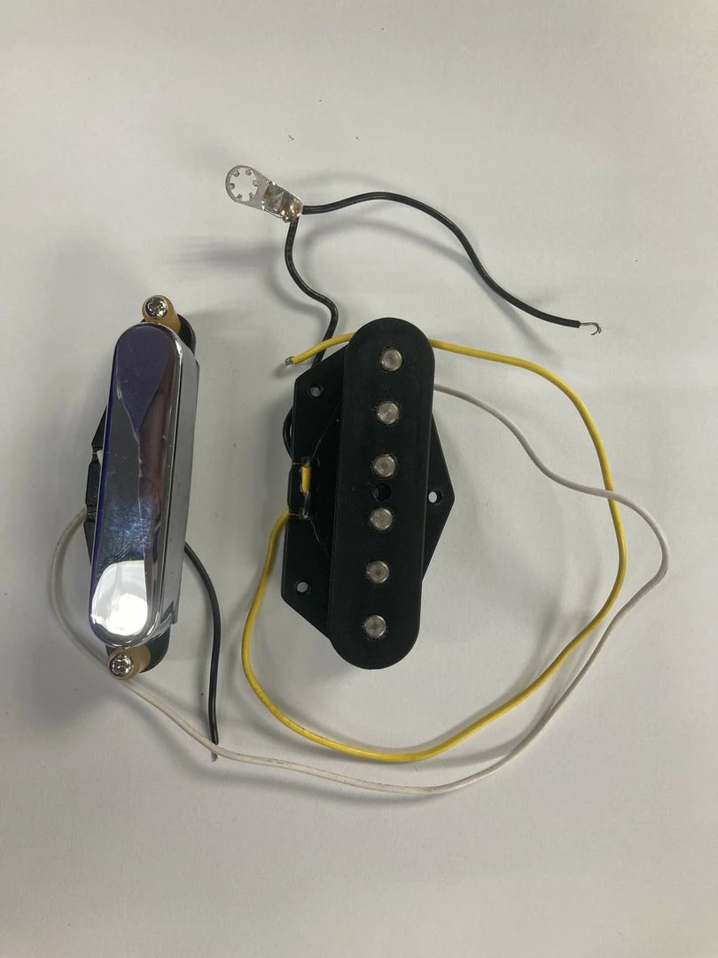 This is a used set of Telecaster pickups – not sure what these came out of but the neck pickup reads 8.65 on a multi-meter and the bridge pickup reads 10.15