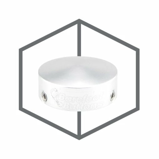 The Skirtless button comes in both V1 and V2 models. It is identical to a standard V1 or V2 button except that the bottom of the button has been shaved flat to solve clearance issues on pedals that have low mounted switches or led lights that interfere with a standard button depressing.