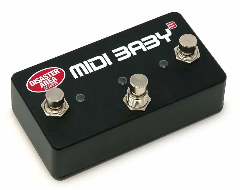 MIDI Baby 3 works like three MIDI Babies in a single enclosure – three footswitches, three LEDs, triple the programmability.