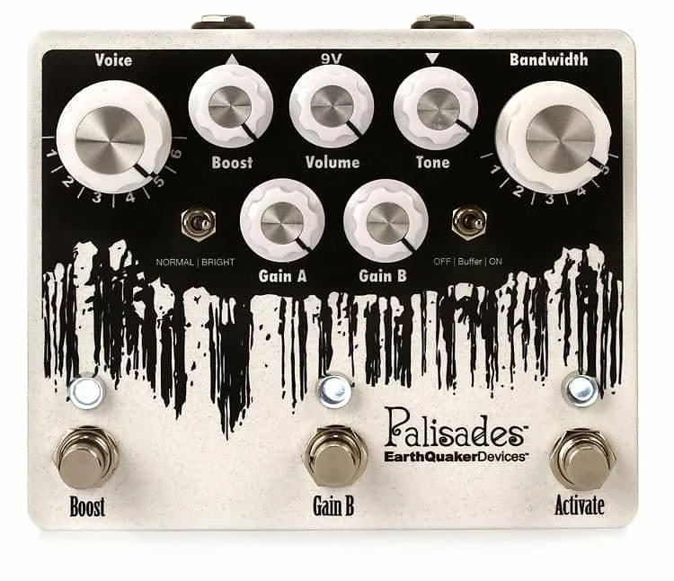 With 6 different clipping voices, 5 bandwidth settings and 2 gain channels you will be hard-pressed to not find a setting that will wipe every mid-boosting overdrive off your board. The clipping voices determine how transparent and open or tight and crunchy the distortion is. They will vary drastically depending on where the gain is set, what channel is active and how much bandwidth is being used. The bandwidth sets the frequency response of the distortion and goes from thin, light and clean through fat heavy and crunchy. It may very well be the single most important control the palisades has and what really sets it apart.