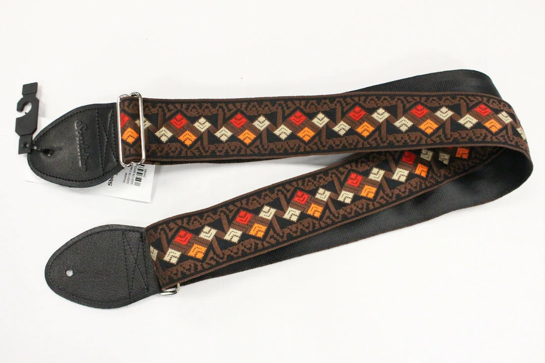 This is a new Souldier Custom Guitar Strap with the Clapton Brown Design and black leather ends