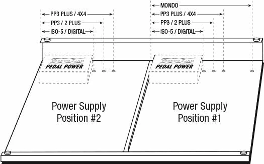 Designed for seamless integration with industry-standard Voodoo Lab Pedal Power®, installing power supplies with included mounting hardware is quick and easy using only a screwdriver. If additional power is needed, Dingbat Medium features a dedicated position for a second Pedal Power that can be quickly installed with optional mounting brackets.
